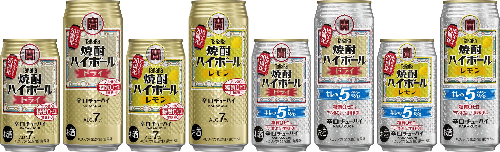 宝酒造株式会社が製造・販売する“タカラ「焼酎ハイボール」”は、2026年3月7日(土)に、発売20周年を迎えます。これを記念し、長年にわたりご愛顧いただいているファンの皆さまへの感謝を込めた限定パッケージデザインの「20周年缶」を、“タカラ「焼酎ハイボール」”および“タカラ「焼酎ハイボール」キレの5%”の〈ドライ〉・〈レモン〉にて、3月上旬より全国で順次切り替えて販売します。