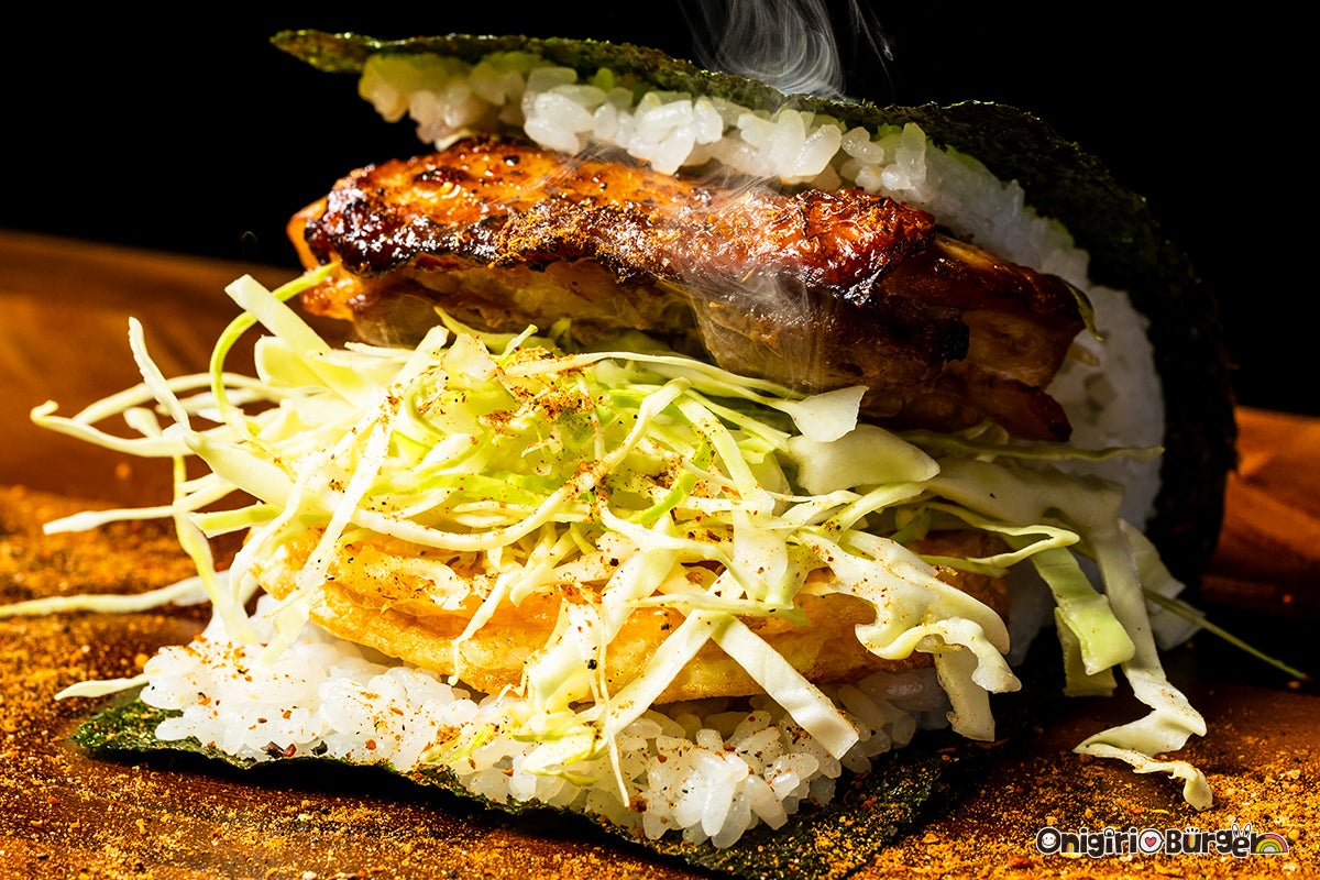 炊きたてのご飯と香り高い海苔で具材を挟み込み、旨み・香り・食感のコントラストをひと口ごとに楽しめるおにぎりバーガーに仕上げました。