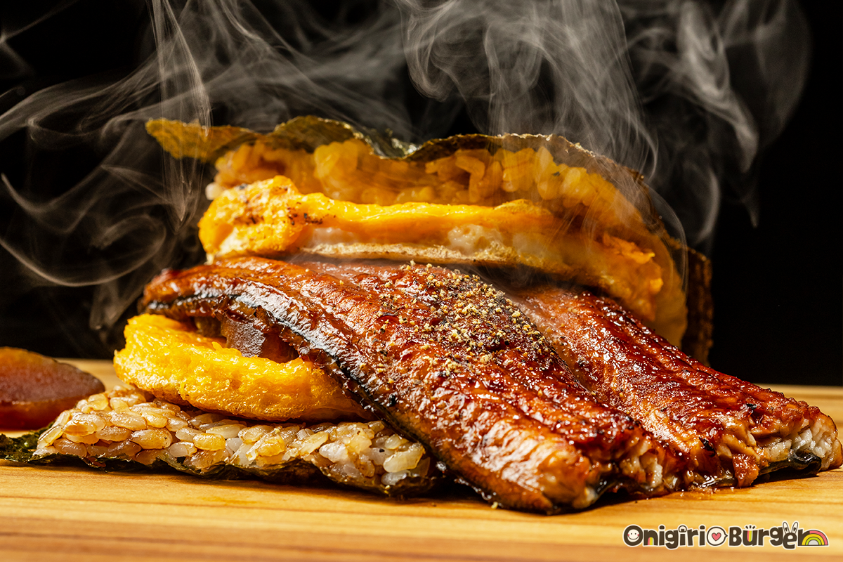 「OnigiriBurger みずほPayPayドーム福岡店」では、「OnigiriBurger 関西国際空港本店」でご好評をいただいている1日限定80個の「侍“SAMURAI” 神戸牛ステーキ」バーガーや「鰻の蒲焼きダブル玉子」バーガーをはじめ、コロッケやソフトクリームなどの人気商品も展開。