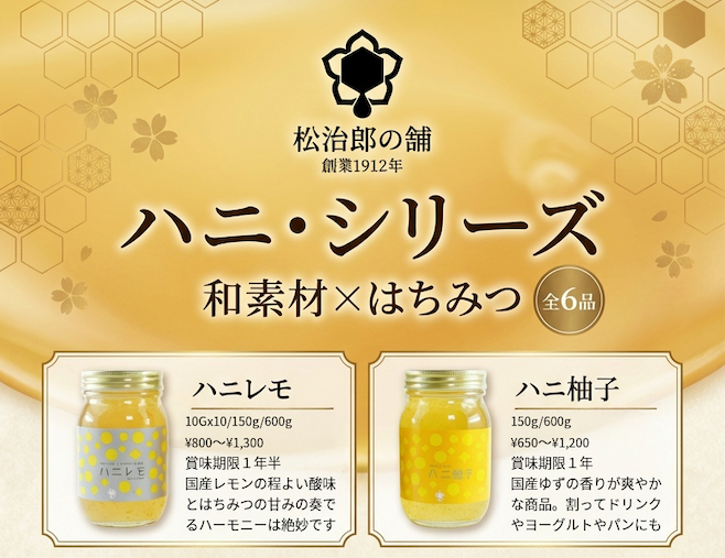 松治郎の舗が提案する「ハニシリーズ」は、天然蜂蜜と国産素材を組み合わせ、“割る・かける・混ぜる”だけでメニュー化できる設計により、現場負荷を抑えながら付加価値商品を展開できる点が特長です。