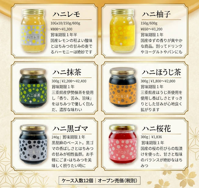同シリーズは、瀬戸内レモンを使用した「ハニレモ」や、高知県産柚子を使用した「ハニ柚子」などの人気商品に続く展開として、和素材のラインアップを拡充しています。