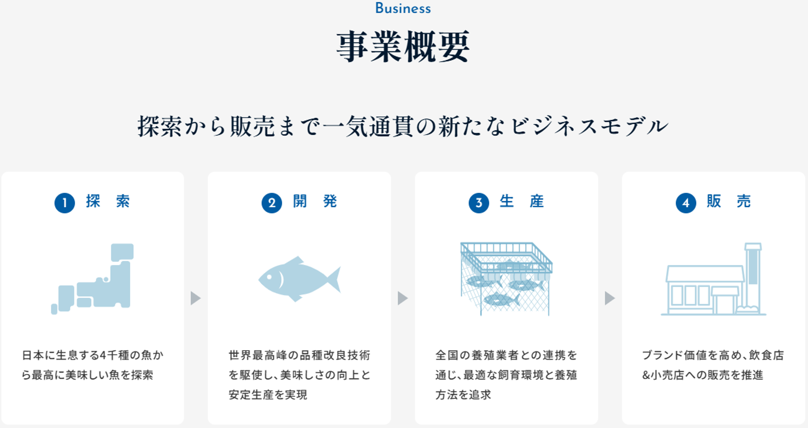 当社は「世界一旨い魚を創り、届ける」ことを目指す東京海洋大学発の水産スタートアップです。日本近海には4,000種以上の魚が生息し、その中には極めて美味であるものの、安定的な漁獲や養殖が困難な「幻の魚」が多く存在しています。私たちは世界最先端の品種改良技術や養殖手法を駆使し、これらの魚の“安定生産”と“美味しさの飛躍”を実現していきます。