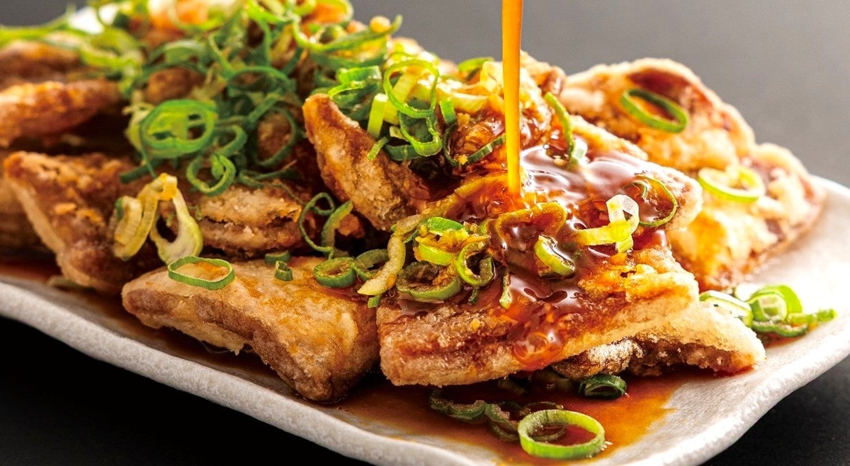 カリっと揚がった豚肉のから揚げに、魁力屋自慢の”かえし”を使った生姜酢醤油ダレをたっぷりとかけ、食欲をかき立てる一皿に仕上げました。