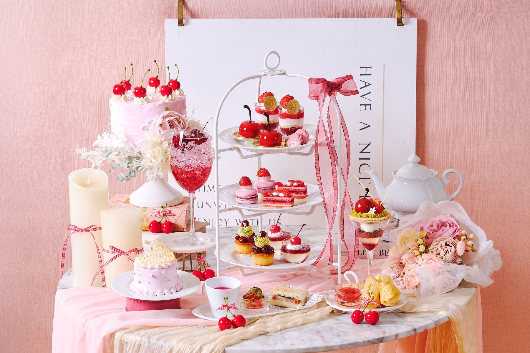 今回は旬の「いちご」と「チェリー」をふんだんに使用した「春いちごと真っ赤なチェリーのアフタヌーンティー」をご提供いたします。