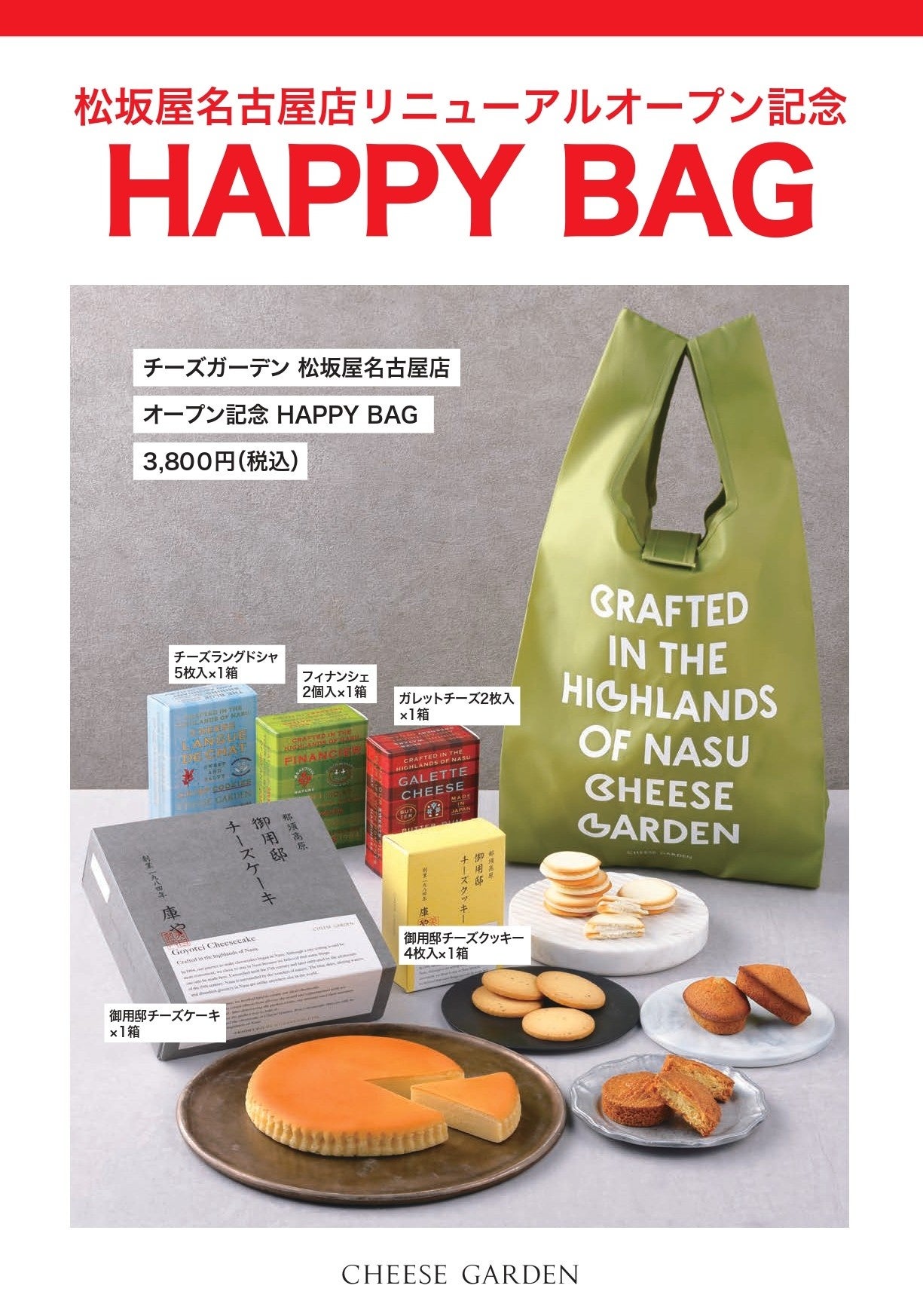 ①チーズガーデン 松坂屋名古屋店リニューアルオープン記念HAPPY BAG期間・数量限定販売