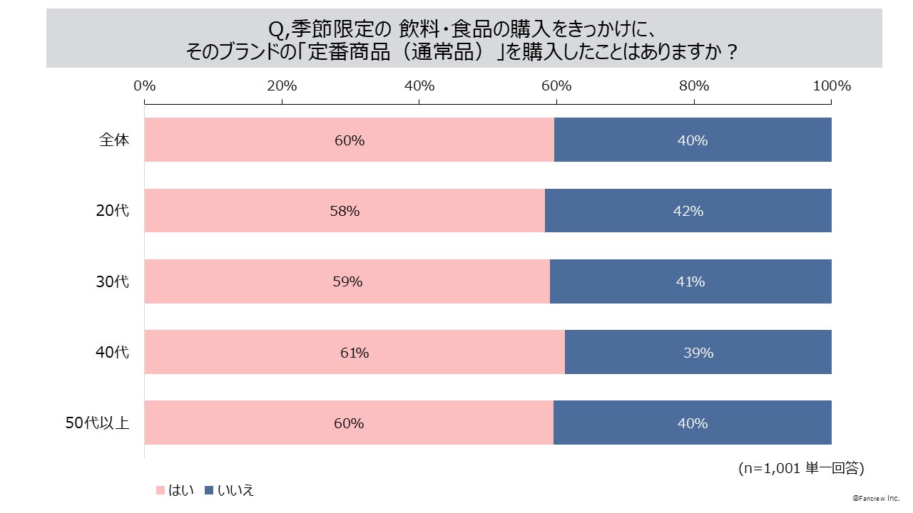季節限定の飲料・食品をきっかけに、そのブランドの定番商品を「購入したことがある」60%