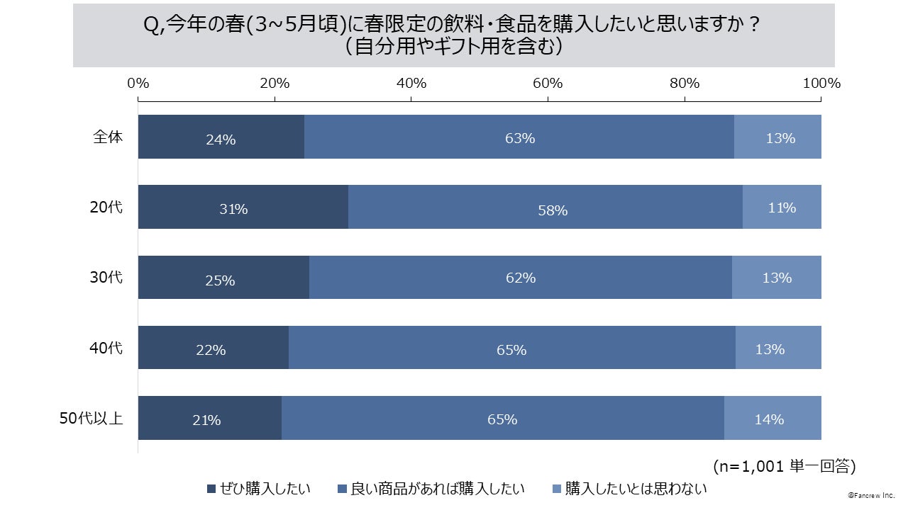 今年の春に「春限定の飲料・食品を購入したい」87%