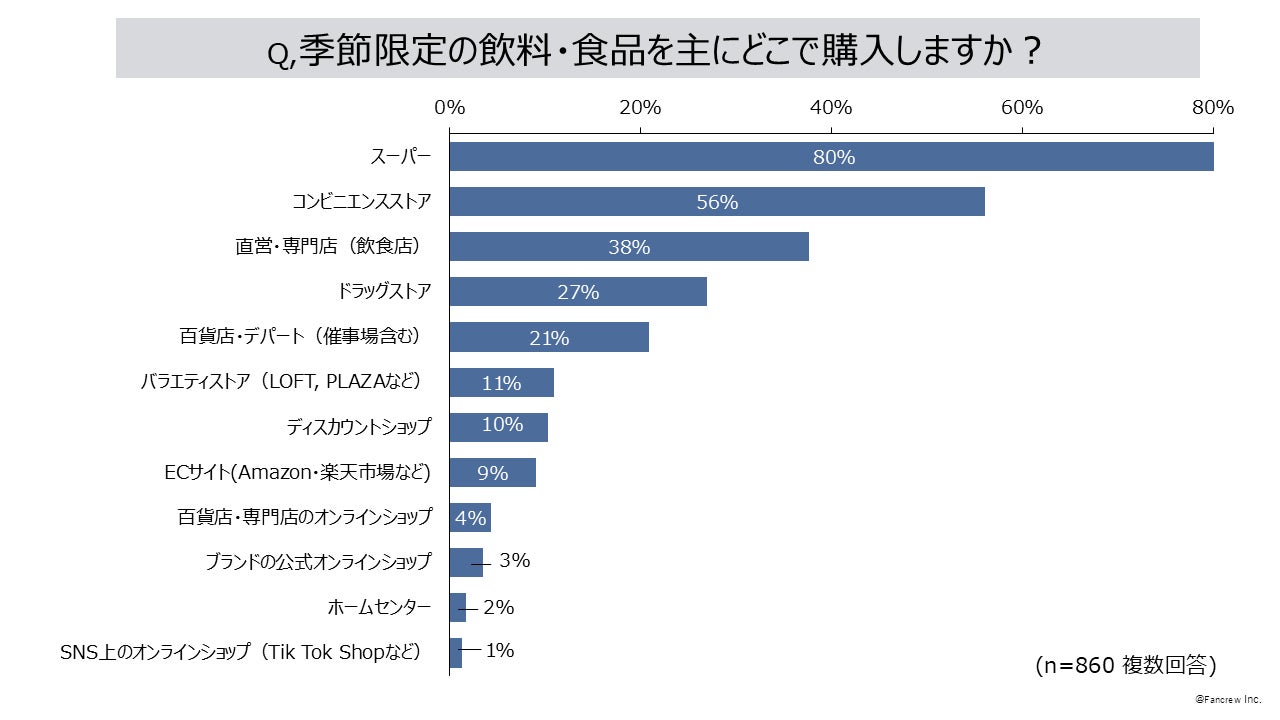季節限定の飲料・食品の購入場所は「スーパー」と「コンビニエンスストア」