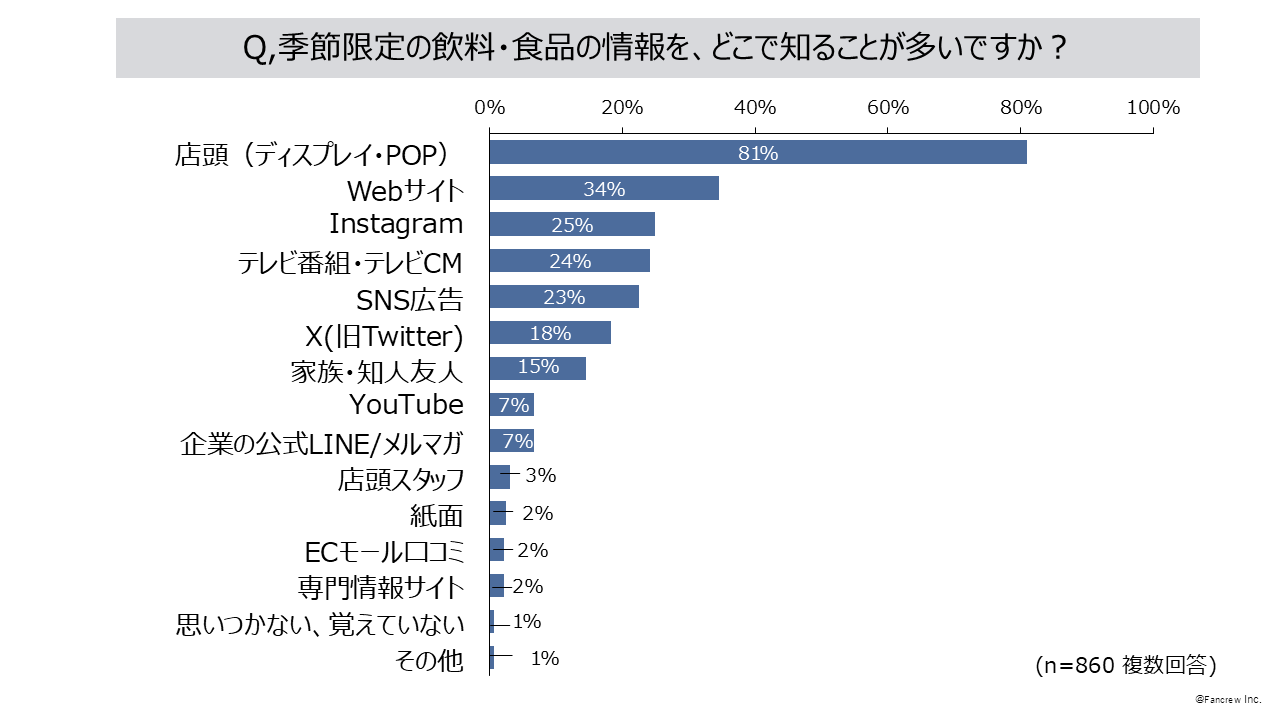 季節限定の飲料・食品の情報収集源は「店頭(ディスプレイ・POP)」81%