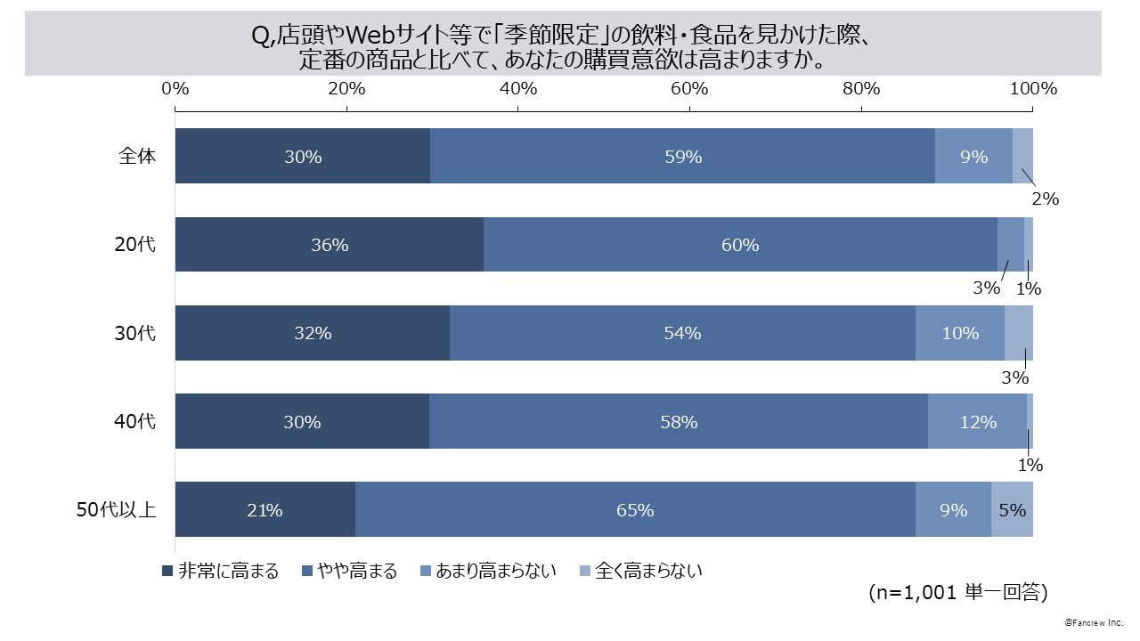 1. 「季節限定」の飲料・食品を見かけた際、定番の商品と比べて「購買意欲が高まる」89%(※1)