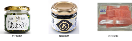 l カネセン水産(味付きつまみたこ各種、タコとあおさ海苔の海鮮ぶっかけ丼)