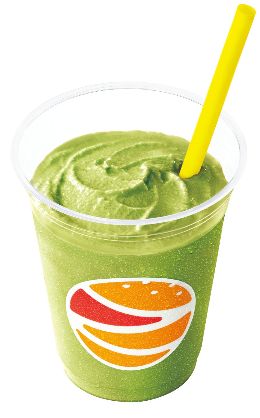 商品概要:抹茶を使用したシェーキに、口どけの良いホイップクリームと、沖縄県産黒糖を使用した黒糖ゼリーをトッピングした商品です。抹茶のほろ苦さと黒糖のやさしい甘みが絶妙に調和する“和風”シェーキに仕上げました。ぷるんとした黒糖ゼリーが食感にアクセントを加えます。