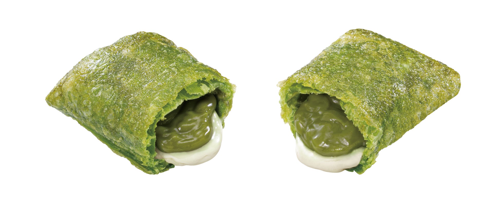 商品概要:宇治抹茶クリームとミルククリームの2層に仕立てたフィリングを、サクサク食感のパイ生地で包んだ商品です。宇治抹茶の芳醇な香りと深みのある味わいを、ワンハンドスイーツとして手軽にお楽しみいただけます。