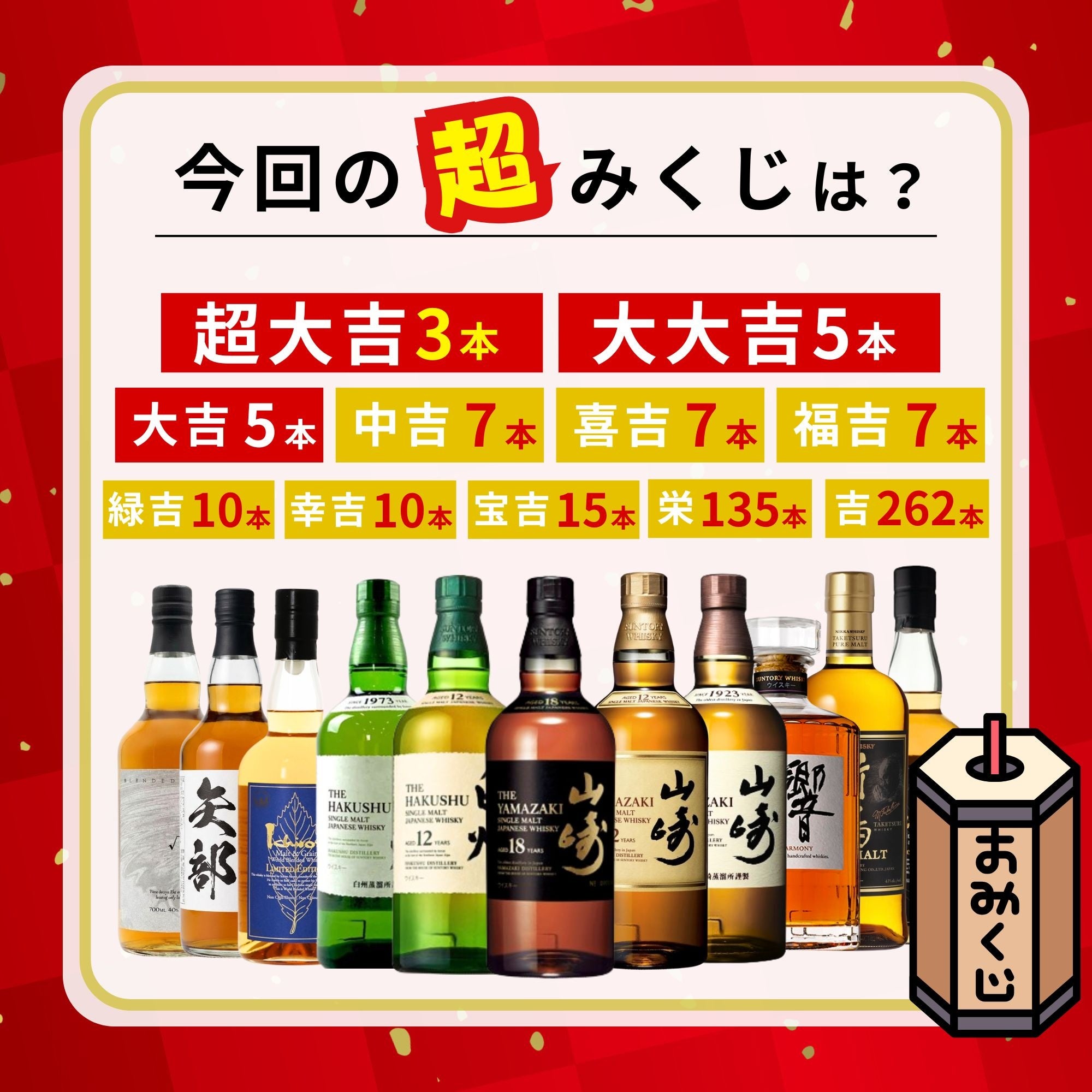 超大吉に入手困難な「山崎18年」、大大吉に「山崎12年」、大吉に「白州12年」を揃えた楽天市場限定企画