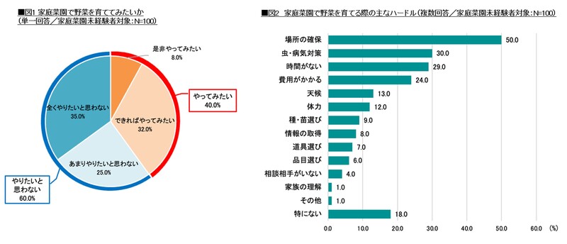 ① 家庭菜園未経験者の4割が「やってみたい」と回答