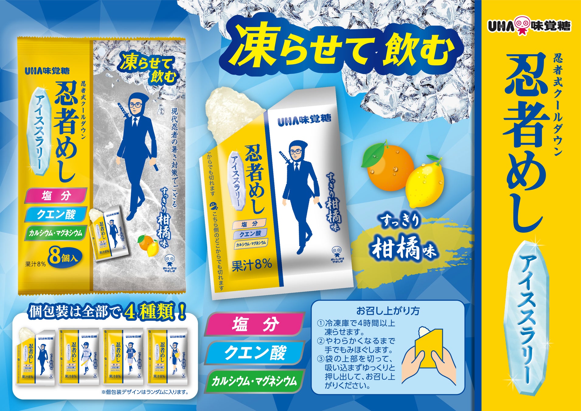 UHA味覚糖株式会社(本社:大阪市中央区、代表取締役:山田泰正)は、ハード食感グミの代名詞「忍者めし」ブランドより、暑い夏を乗り切るための新商品「忍者めしアイススラリー すっきり柑橘味」と、食欲が低下する季節でも塩分補給がしやすいチュルンと食感のゼリー「塩分レスキュー 塩ゼリー 塩レモン味」を2026年4月20日より発売いたします。