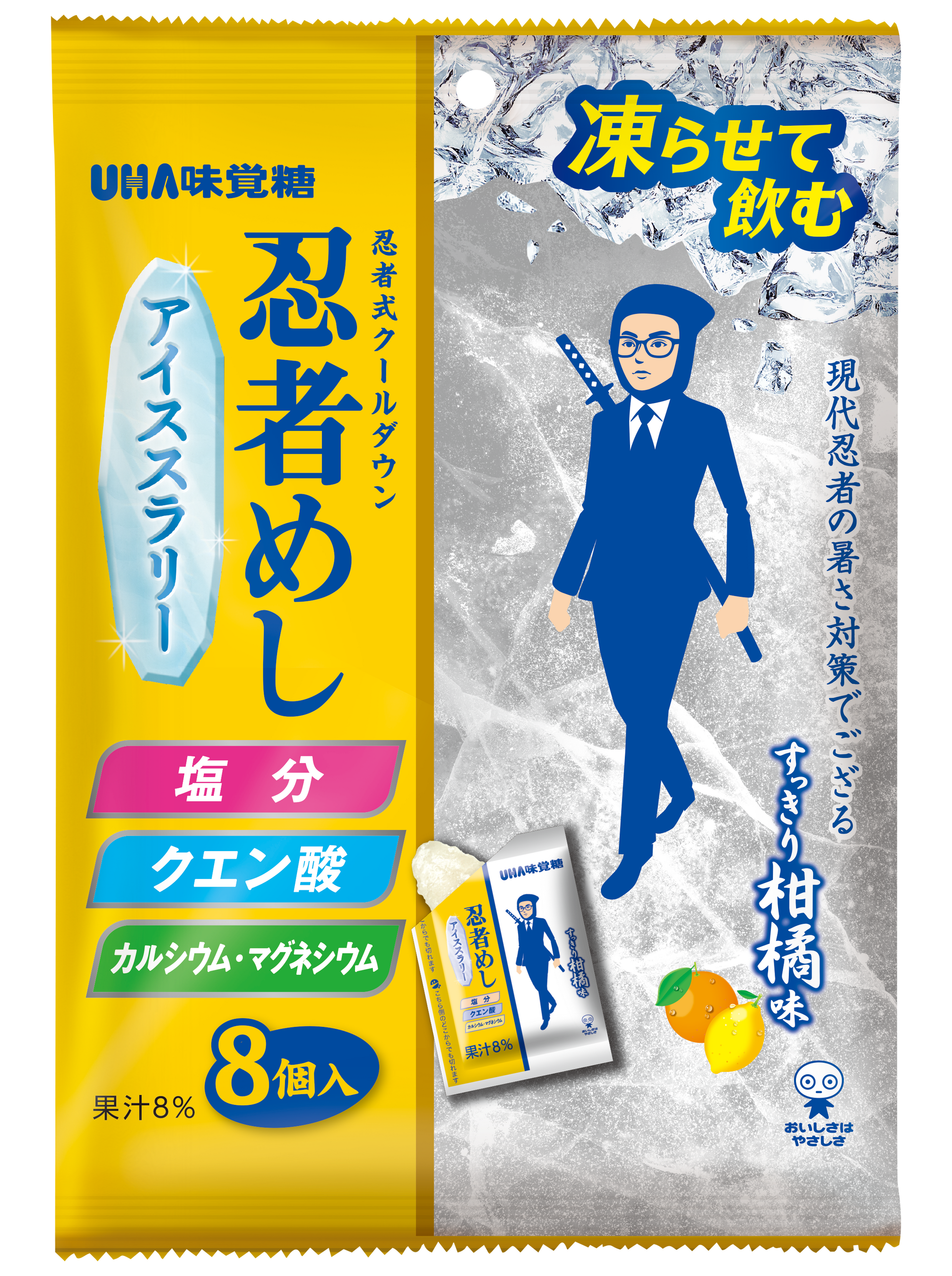 UHA味覚糖株式会社(本社:大阪市中央区、代表取締役:山田泰正)は、ハード食感グミの代名詞「忍者めし」ブランドより、暑い夏を乗り切るための新商品「忍者めしアイススラリー すっきり柑橘味」と、食欲が低下する季節でも塩分補給がしやすいチュルンと食感のゼリー「塩分レスキュー 塩ゼリー 塩レモン味」を2026年4月20日より発売いたします。
