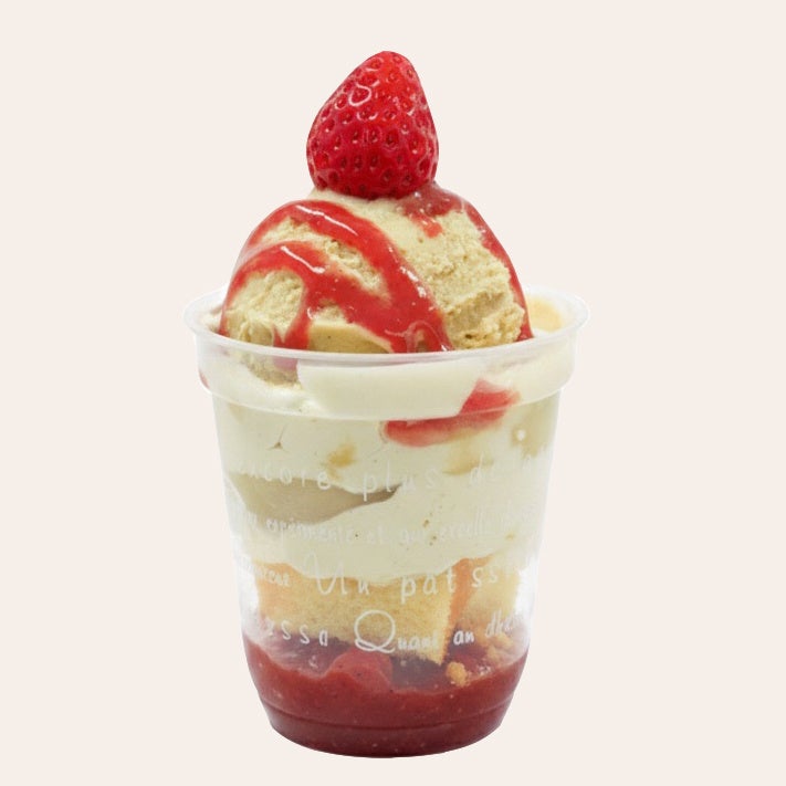 今回のあいぱくでは、濃厚で香ばしいピスタチオアイスクリームと、甘酸っぱいいちごを合わせたパフェを販売。フルーティーなピーチいちごソースは相性抜群です。見た目も春らしく華やかな一品。さらに、シチリア現地で親しまれているドリンクも同時販売。ピスタチオ好きには見逃せない!