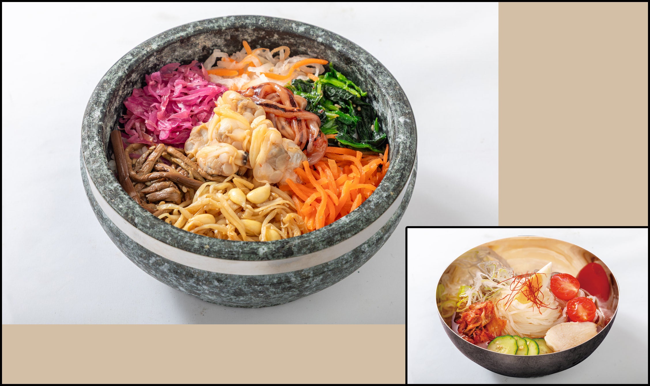 あさりとイカの旨辛ビビンバにあっさり冷たいミニサイズの冷麺を