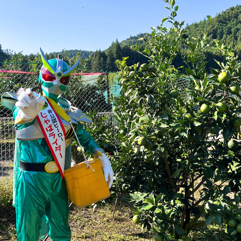村一番の特産品である「じゃばら」をモチーフにして誕生したご当地ヒーロー。非公認のキャラクターながら、その独特の存在感とサービス精神で、今や他イベントへの出演要請が相次ぐほど。すっかり「村の顔」として定着しています。さまざまな食品に加工されているじゃばらの魅力を全国に広めるべく、各種イベントにも積極的に参戦し、日々PR活動に励んでいます。