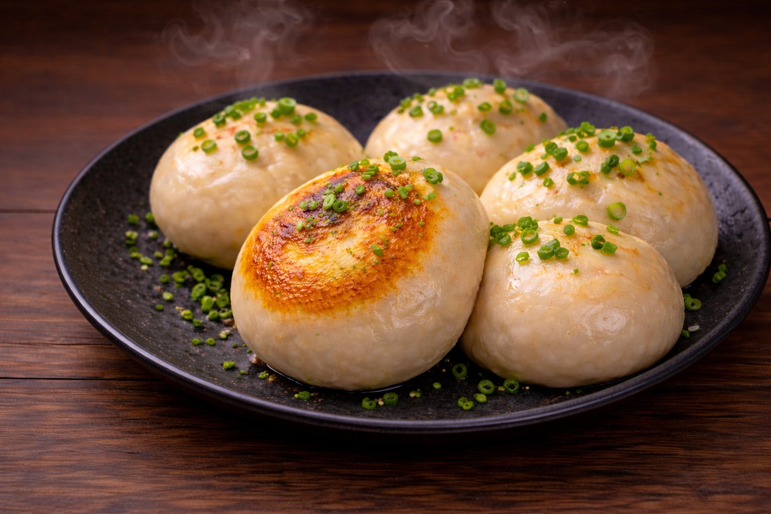 もっちりとした皮の中にあふれる肉汁を閉じ込めた「焼き小籠包」は、ひと口ごとに旨みを感じられる一品。出来立てならではの熱々の美味しさをお楽しみください。