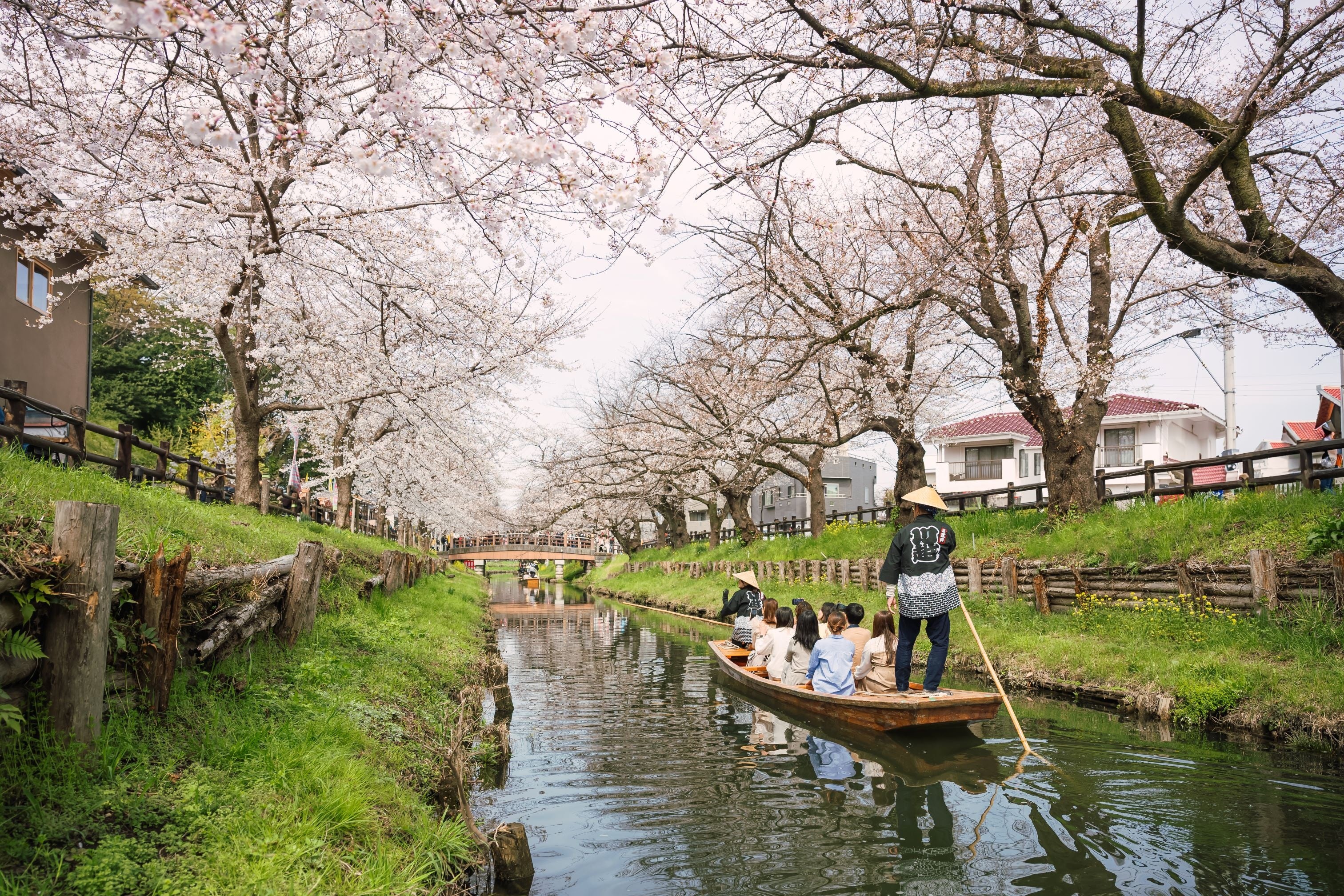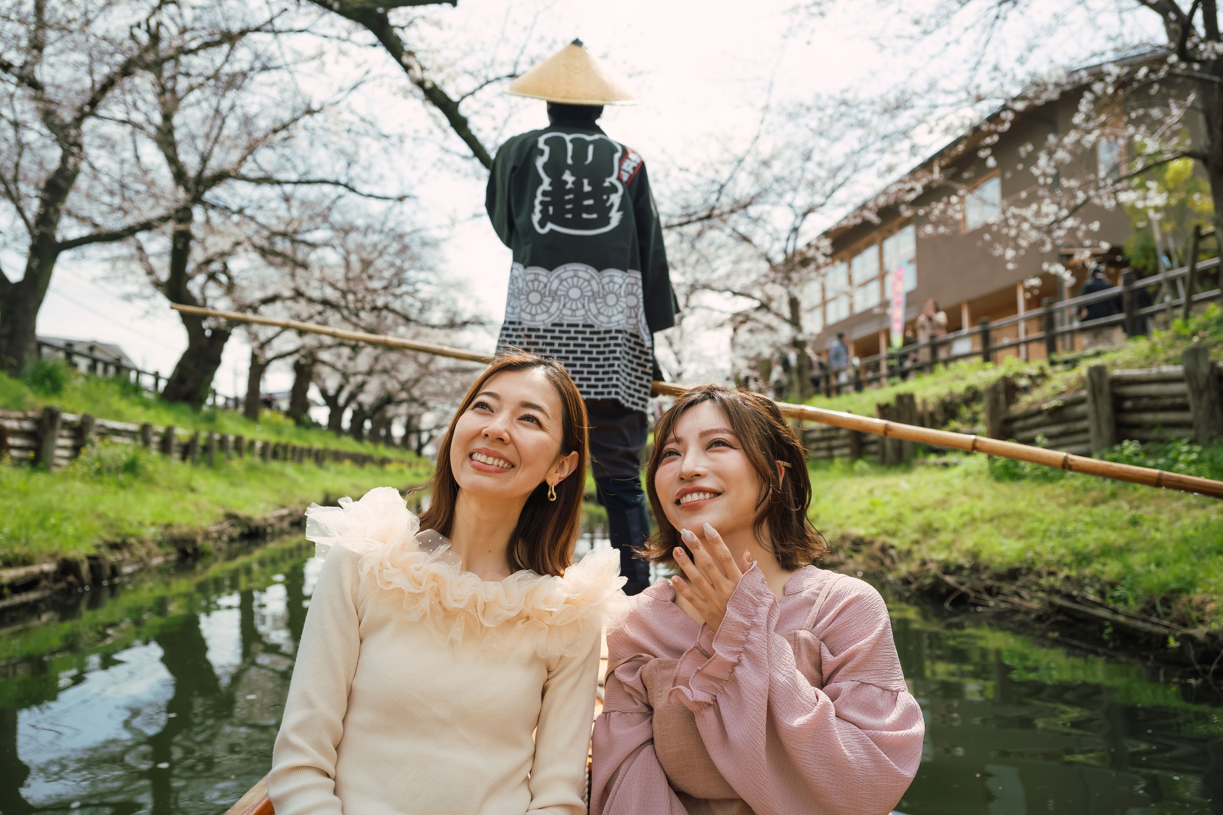 船頭が竿をしならせ、ゆるやかに進む舟上から見る桜は、穏やかな春のひとときを感じさせてくれます。