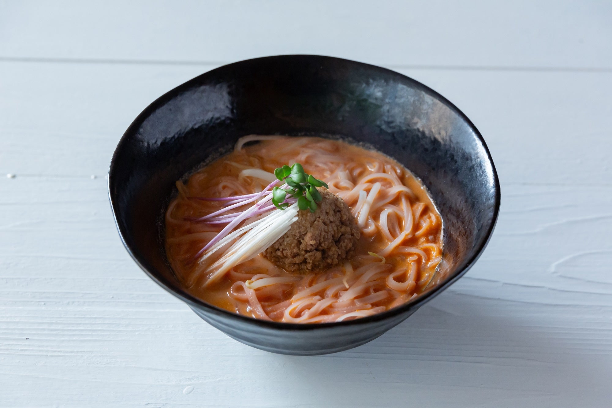 華やかに花椒が香るあっさりした担担めん。スープにビーツを使うことで、めんが鮮
