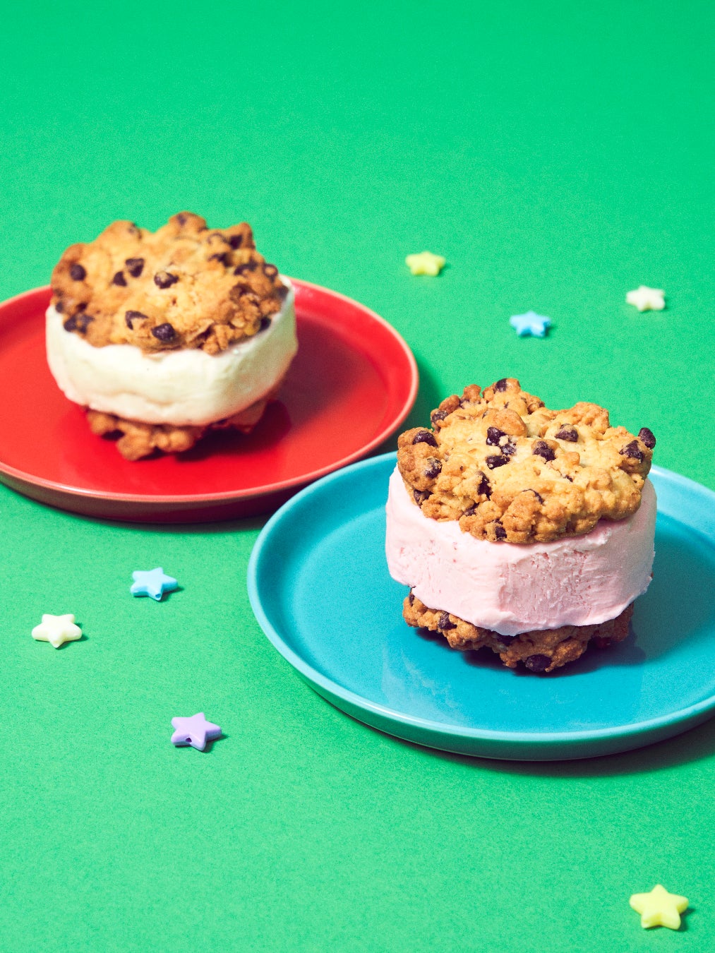 チョコチップとくるみを贅沢に使用したクッキーに、クリーミーなバニラアイスと甘酸っぱいストロベリーアイスをはさんだ2フレーバーをご用意しました。クッキーのほのかな塩味もアクセントになり、最後のひとくちまで飽きずにお召し上がりいただける一品です。
