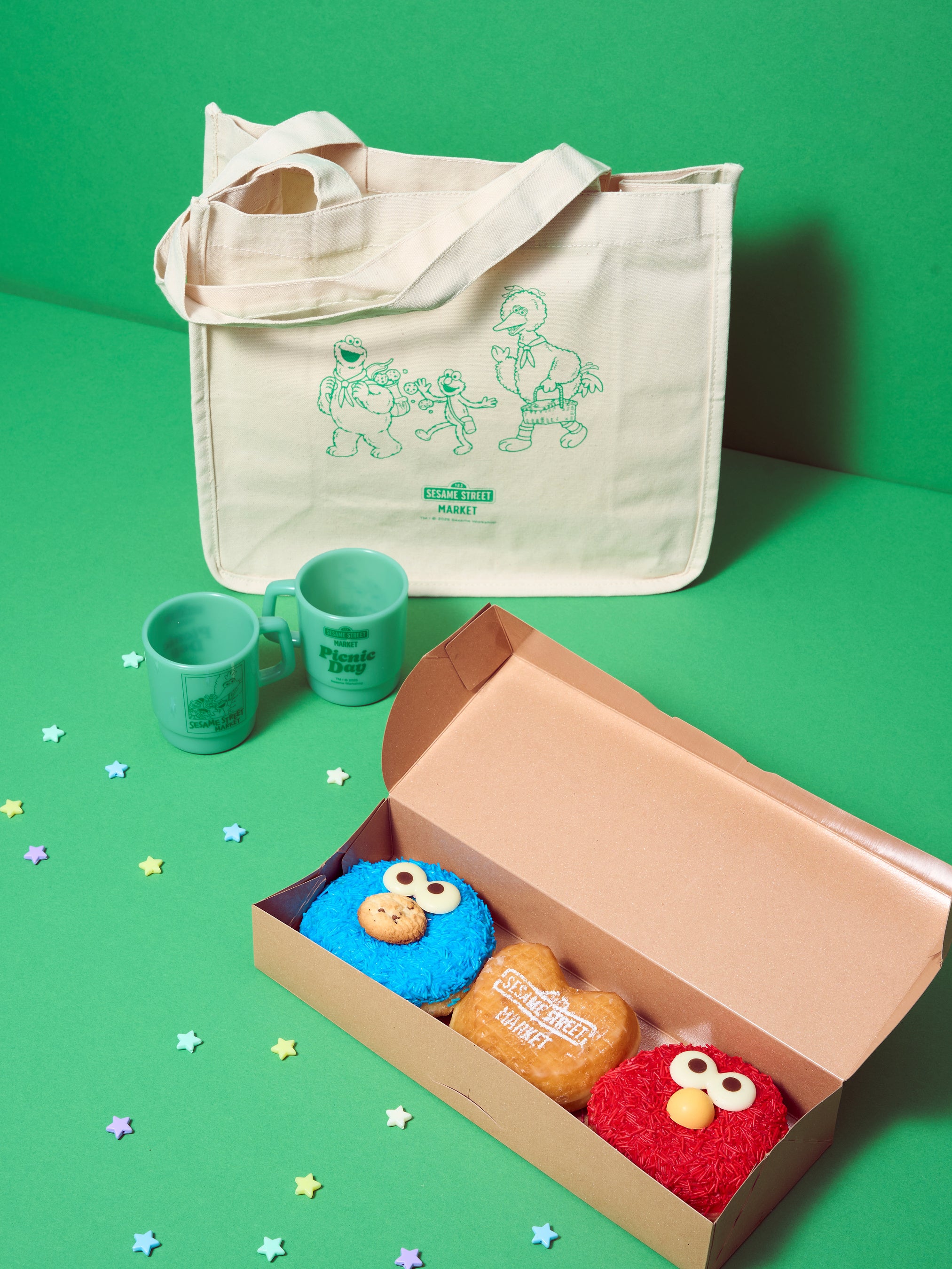 3月20日(金・祝)のオープンから3月22日(日)の三日間限定で、セサミストリートマーケットのトートバッグに、カフェメニューで人気を博しているドーナツ3個入りボックスとカップを詰め合わせたお得なCAFE HAPPY BAGを数量限定で販売いたします。