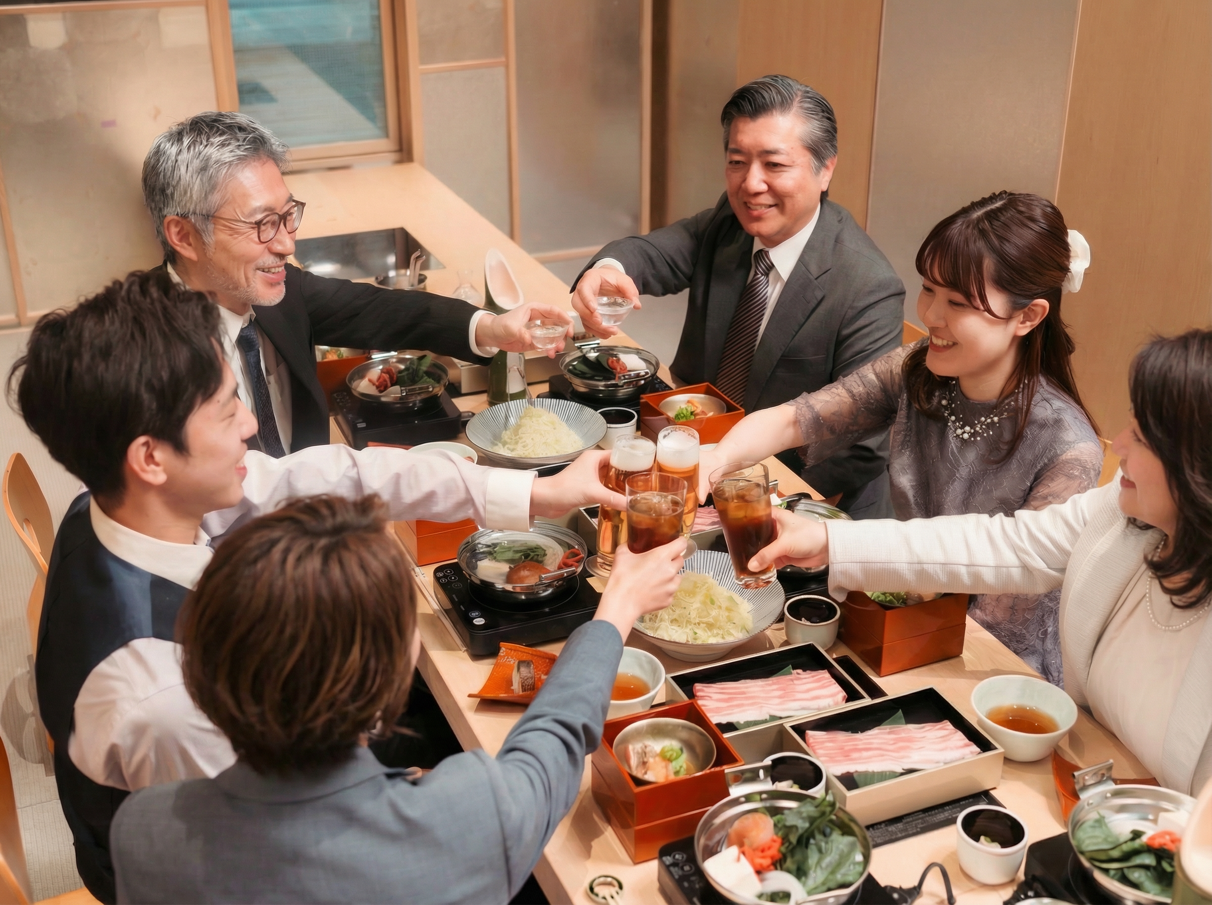 お客様一人ひとりのご要望に寄り添い、幅広いシーンで安心してお選びいただける店舗づくりを大切にしています。宴会や会食はもちろん、接待、ご家族のお祝い、観光でのご利用、海外からの団体のお客様まで、多様な利用目的や食のニーズに柔軟に対応し、どなたにも心地よくお過ごしいただけるサービスをご提供いたします。