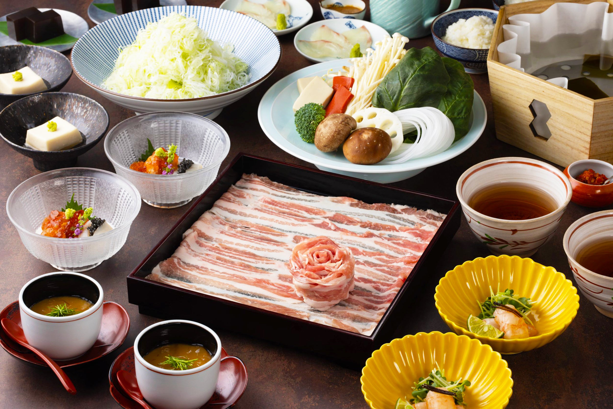 創業の地・京都から初めて神奈川へ出店する本店舗は、看板料理である「出汁しゃぶ」に加え、最大40名様の大広間、時間無制限の飲み放題、ヴィーガン会席、外国語対応など、多様なニーズに応えるサービスを提供。横浜でのお食事やビジネス会食はもちろん、両家のお顔合わせなど人生の節目にあたるお祝い等にも選ばれる“特別な場所”を目指します。
