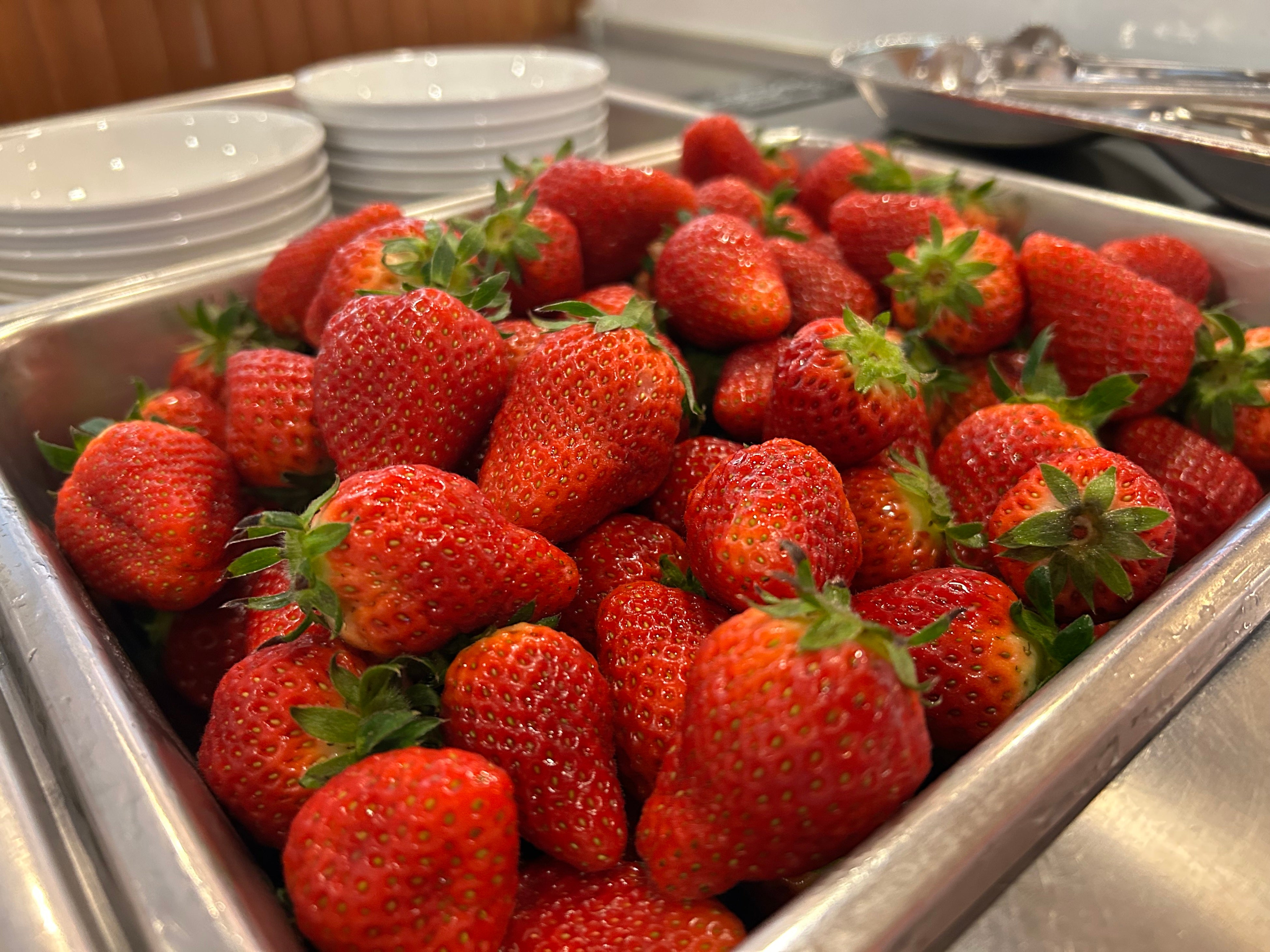船内レストランで就航地宮城県の市場から直送の新鮮ないちごが食べ放題!さらに、チュロスやクリーム、ソースで「Myパフェ」も