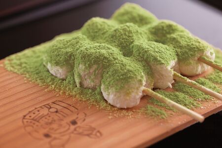代々受け継がれる伝統の技法で、毎朝本店にて蒸し上げる小餅は一本一本手作り。特製の蜜を塗り、青大豆と抹茶をブレンドしたきな粉をたっぷりまとわせて仕上げます。柔らかな餅と、上品な甘さの蜜、豊かなきな粉の風味が織りなす優雅な味わいは、まさに出来たてならでは。