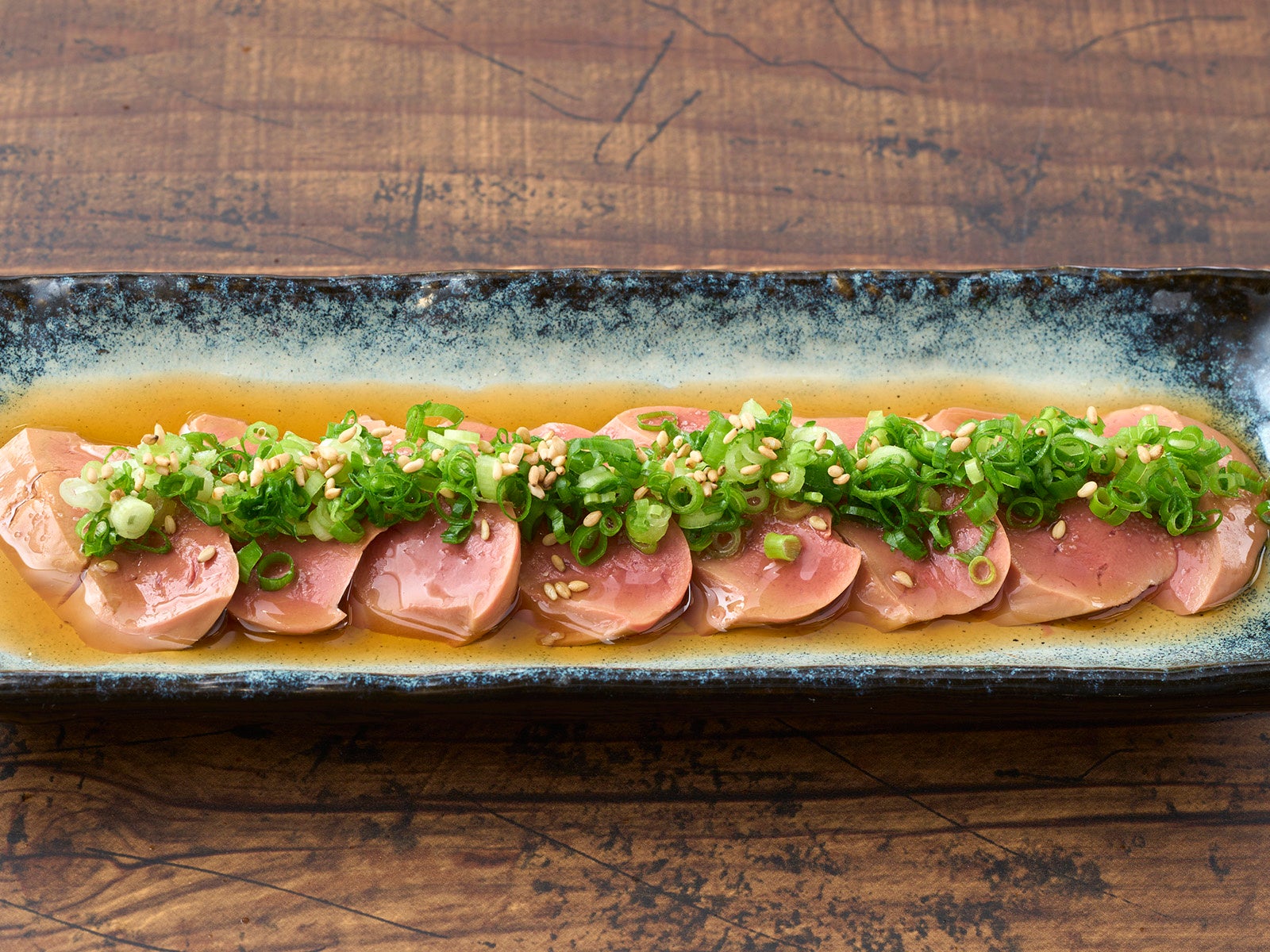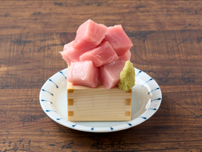 肉刺し【鶏レバーのごま塩】580円(税込638円) お値打ち【本まぐろブツ】680円(税込748円)