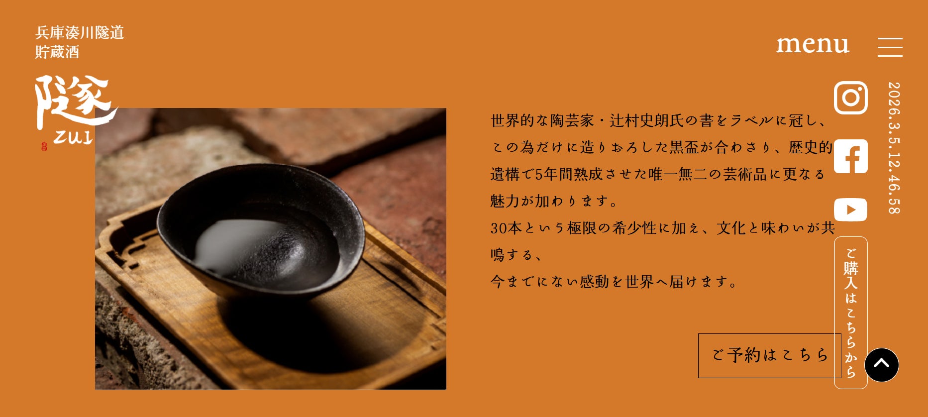 本酒は、湊川隧道の静寂の中で2020年より熟成を重ね、晴れて2026年2月5日(木)に蔵出しの日を迎えました。そして「天釈日」(てんしゃび)とも呼ばれる「一粒万倍日」、「寅の日」、そして「大安」が重なる最強開運日ともなる本日、3月5日に予約受付が開始となりました。