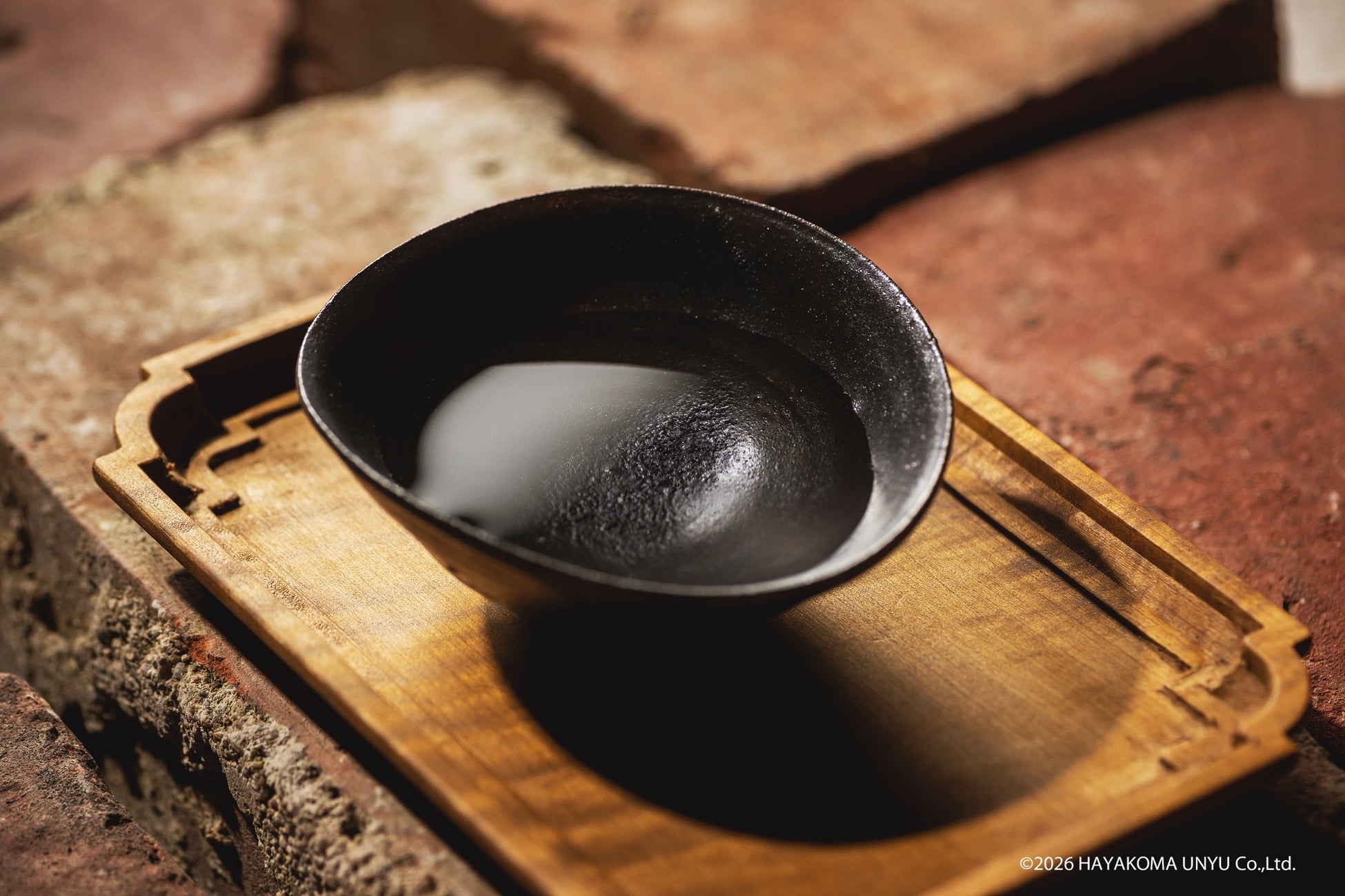 さらに2025年10月、辻村氏は実際に湊川隧道を訪問。悠久の静寂と歴史の重みに触れ、隧道に眠る熟成酒を前に、自身の思想と美意識を重ね合わせ、新たな着想を得ました。その体験から生まれたのが、本酒のためだけに作陶された酒器、「黒盃(くろさかずき)」です。