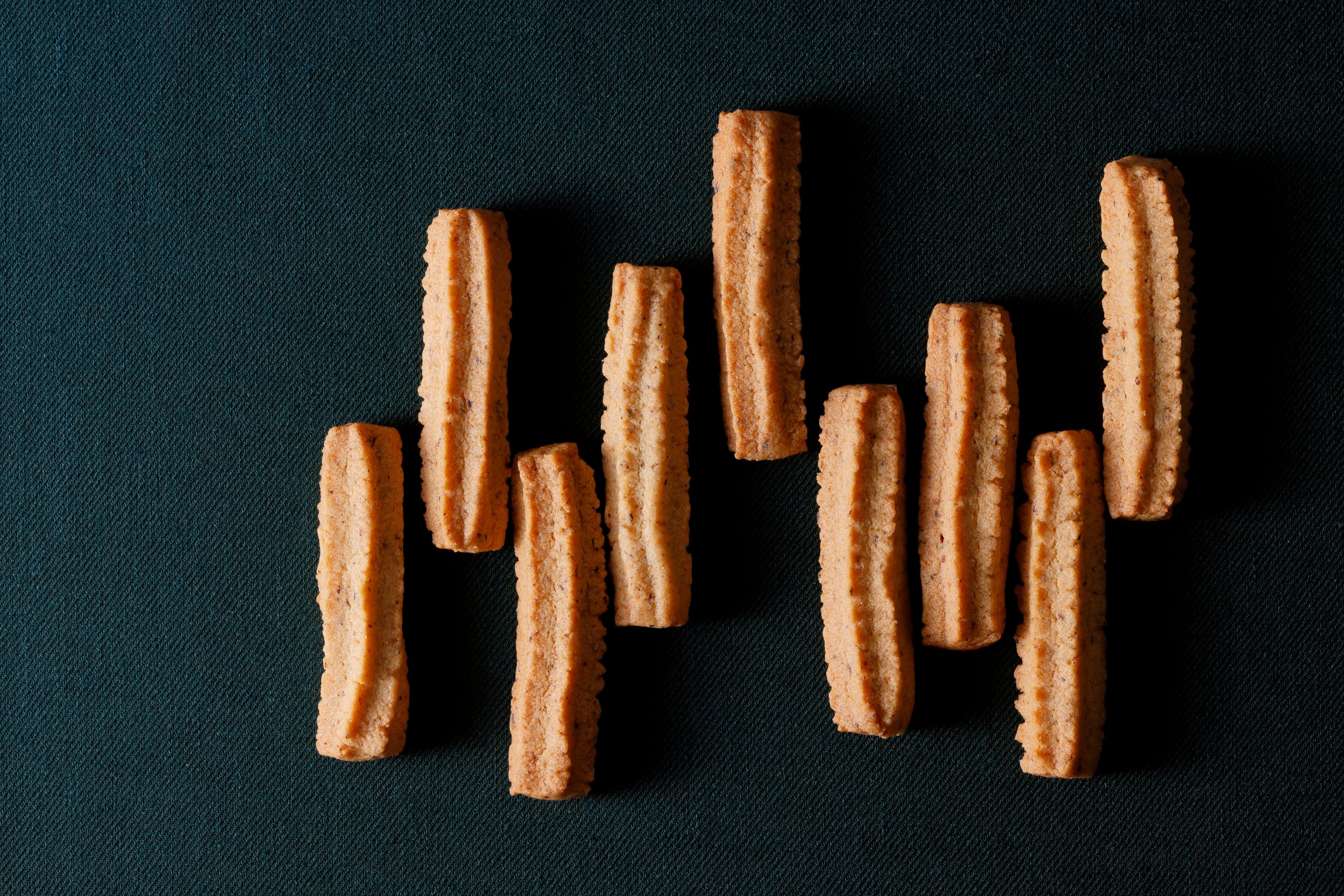 芳醇なバターと、香ばしいヘーゼルナッツ。丁寧に絞った生地を、サクッと軽く焼き上げました。