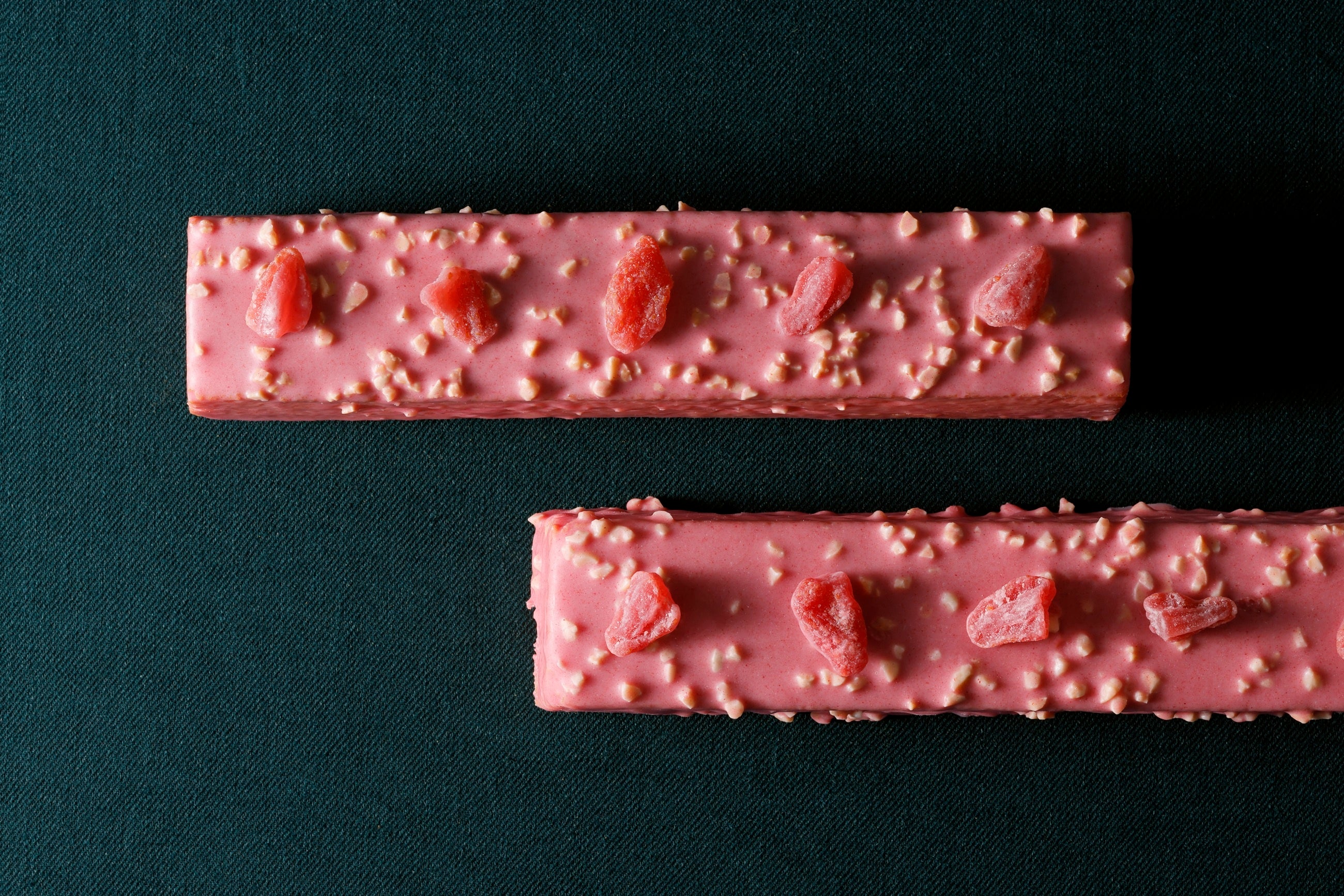 いちごパウンド生地×しっとりダックワーズ。二層の生地の間に、とろけるプラリネといちごチョコレートが織りなす、贅沢なハーモニー。仕上げは、手仕事で丁寧に絞ったダックワーズ。アーモンドの余韻といちごの華やかな香りをどうぞ。