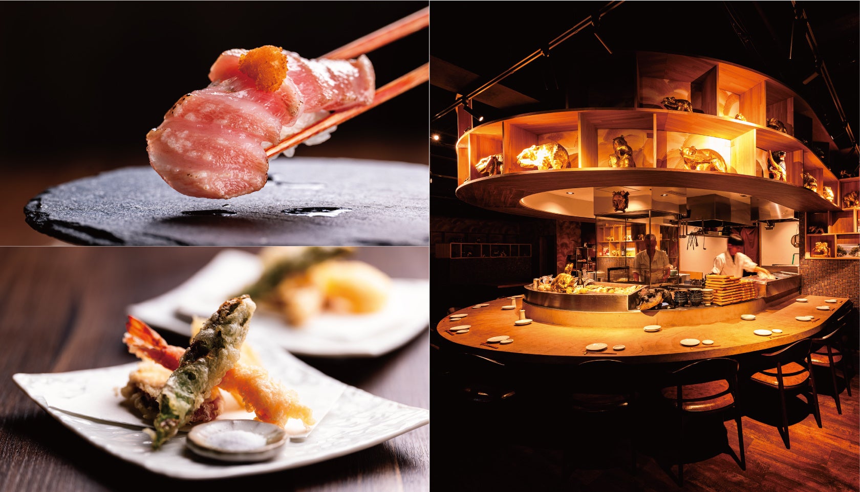 特別な日のお食事やビジネスシーン、贅沢な女子会などに木を基調とした落ち着きのある空間と職人技が光る鮨と炉端焼きで非日常的な北海道体験をお楽しみください。