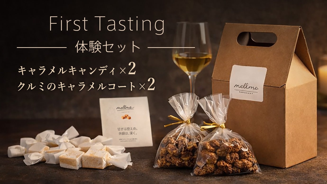 ワインやウイスキーに寄り添う、ワインやウイスキーに寄り添うキャラメルを軸にした大人のための菓子ブランド「mellmo」が、2026年3月6日正午より応援購入サービス「Makuake」に初登場します。
