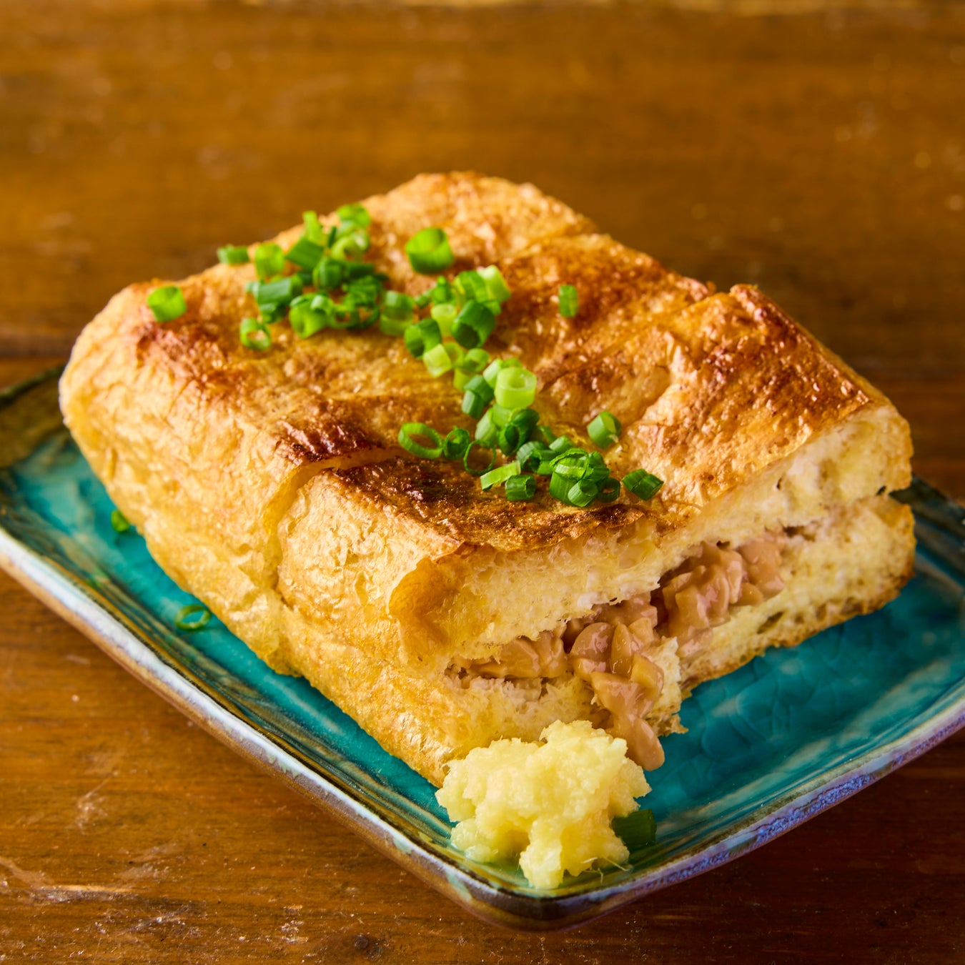 中でも、日本酒よくあう魚介料理がおすすめです。鮮魚を豪華に盛り付ける【本日の厳選】お造り盛りをはじめ、【宮城県産】極上マグロ刺し、とろサーモン刺身、タコぶつ、甘海老刺し、しめ鯖、濃厚胡麻カンパチ、ほたて刺身、とろ鯖塩焼き、特大ほっけ焼き、子持ちししゃも炙り、ホタルイカの沖漬け、つぶ貝わさび、イカの塩辛などを用意しています。ほかにも、コブクロ刺し、肉味噌ピーマン、子持ちこんにゃく、しっとり蒸し豚の香味サラダ、アジフライ、栃尾揚げ納豆添えなどがあり、幅広い味を楽しめます。さらに、揚げナスポン酢、マカロニサラダ、オニオンスライス、チャンジャ、きくらげポン酢は、手頃な108円で提供します。