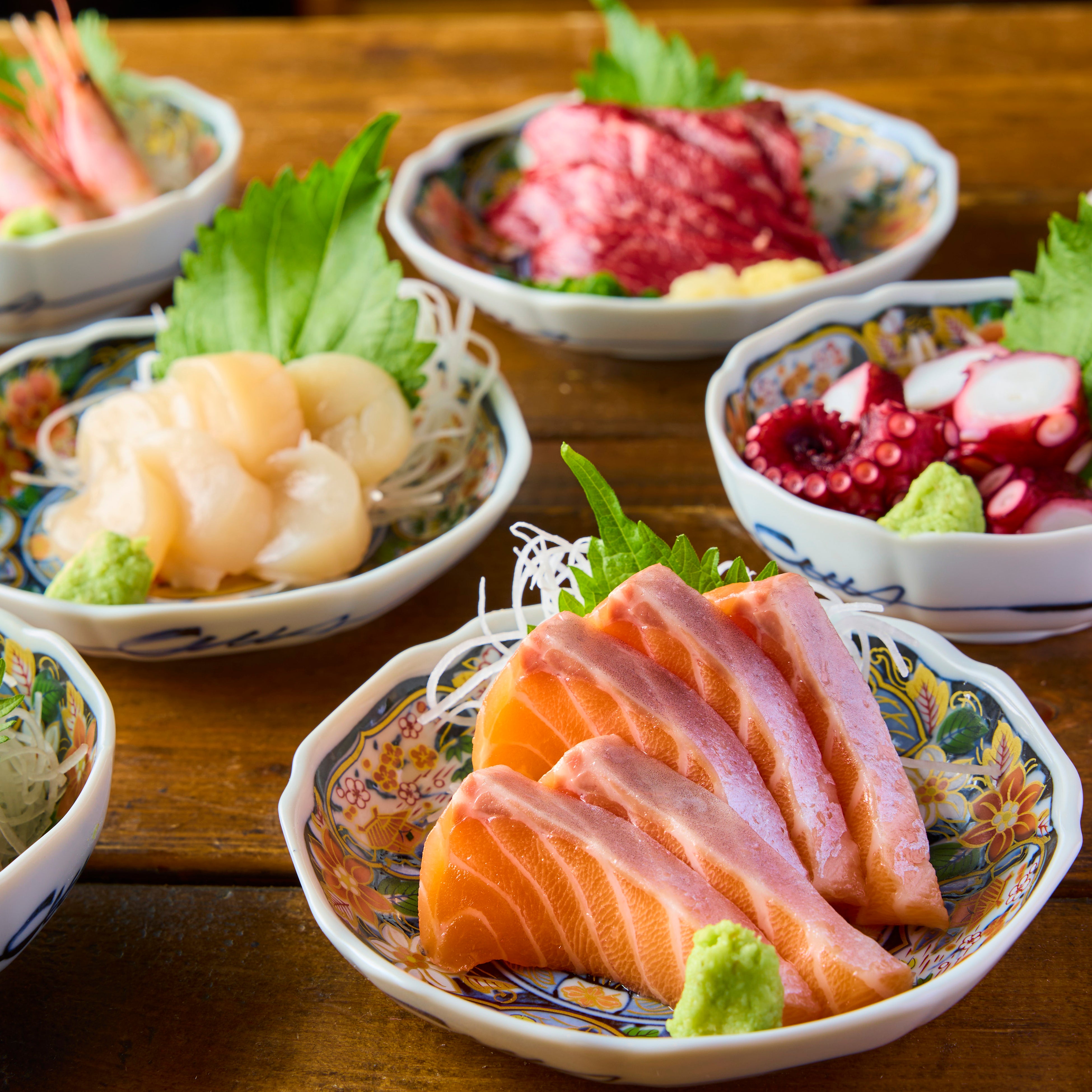 新鮮な刺身盛など、満足度抜群の料理を2時間の飲み放題付きで楽しめるおすすめコースを始め、豪華食材を贅沢に使用した鍋をご堪能ください。