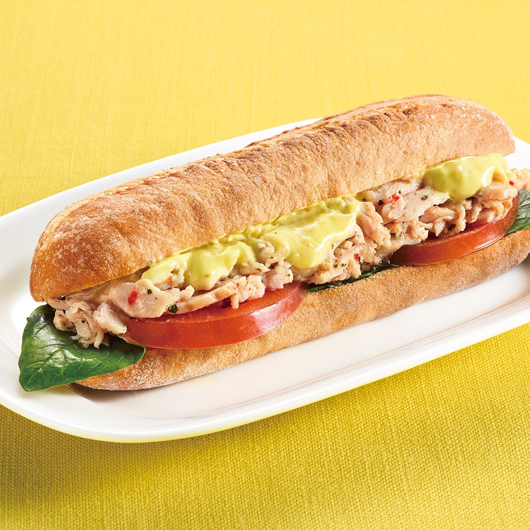 さっぱりとした味わいの中にチキンの旨みが広がる、春のランチタイムにぴったりの彩り豊かな焼きたてサンドです。
