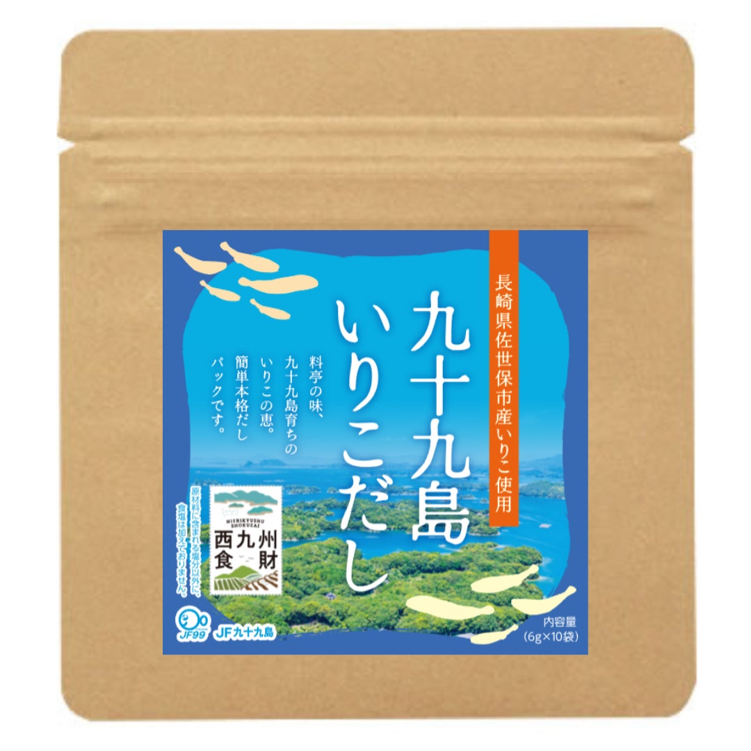 佐世保市北西部の小佐々町は「いりこ(煮干し)」の日本有数の生産地です。目の前には、主な漁場となる景観風靡で小魚の餌となるプランクトンが豊富な「九十九島」が広がっています。九十九島漁業協同組合では、その「九十九島いりこ」を『西九州食財』に登録し、「煮干いりこ」を販売しています。