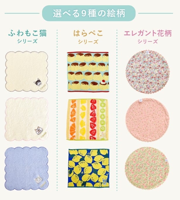 SNS調査から生まれた「選べる9柄ハンカチ」
