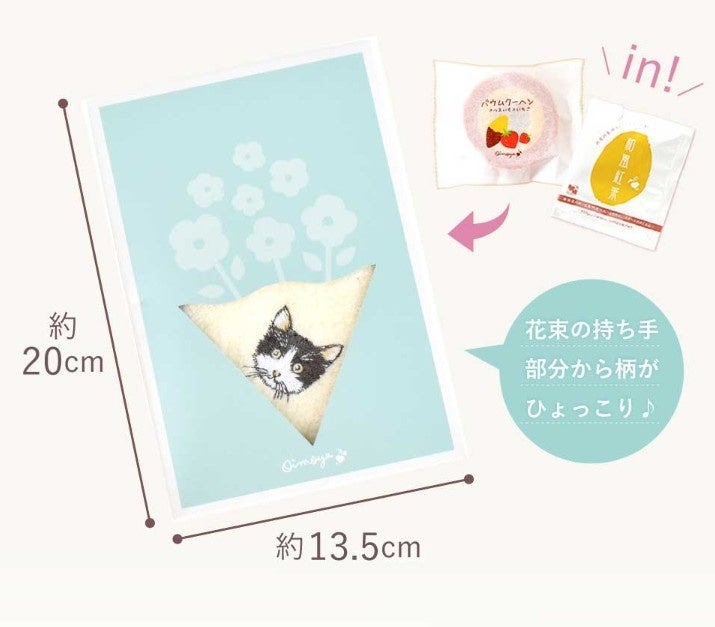 セット内容:選べるハンカチ…1枚、苺とお芋のミニバウム…1個、静岡紅茶…1袋