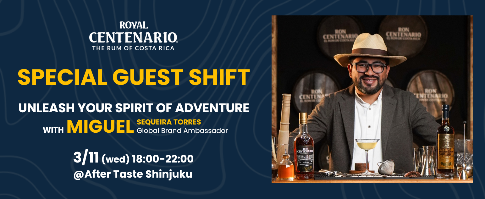 株式会社 都光(東京都台東区)が日本国内正規代理店として販売するコスタリカ産プレミアムラム「ロイヤル・センテナリオ」。この度、グローバルブランドアンバサダーを務めるミゲル・セケイラ・トーレス氏が来日し、ゲストバーテンディングイベントを2026年3月11日(水)東京・新宿のダイニングバー「After Taste」にて開催します。