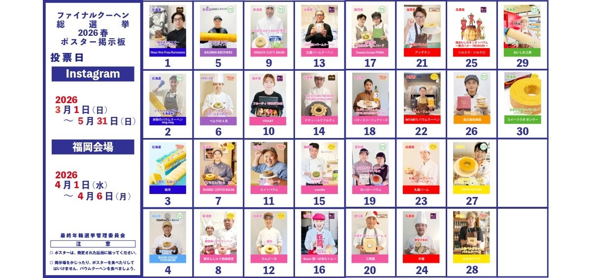 Instagram投票も実施されるため、開催期間中は日本全国どこからでも投票が可能です。みなさまの清き1票をご当地ブランドが心待ちにしています。あなたの推しのご当地バウムクーヘンに投票して、推しバウムを応援しましょう!