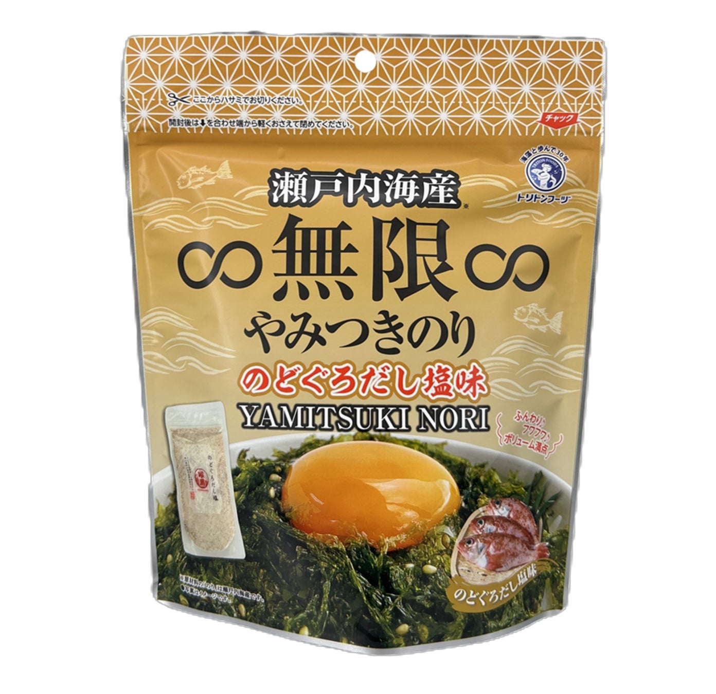 「∞無限∞のりシリーズ」は、トリトンフーヅが展開する、無限に食べられるほど飽きない美味しさのばらのりシリーズです。以前より販売しているプレーンタイプの「∞無限∞素焼きのり」や「∞無限∞やみつきのり」、「∞無限∞わさびのり」などはそれぞれが販売予想を上回り、シリーズ累計販売個数360万個を突破しております。