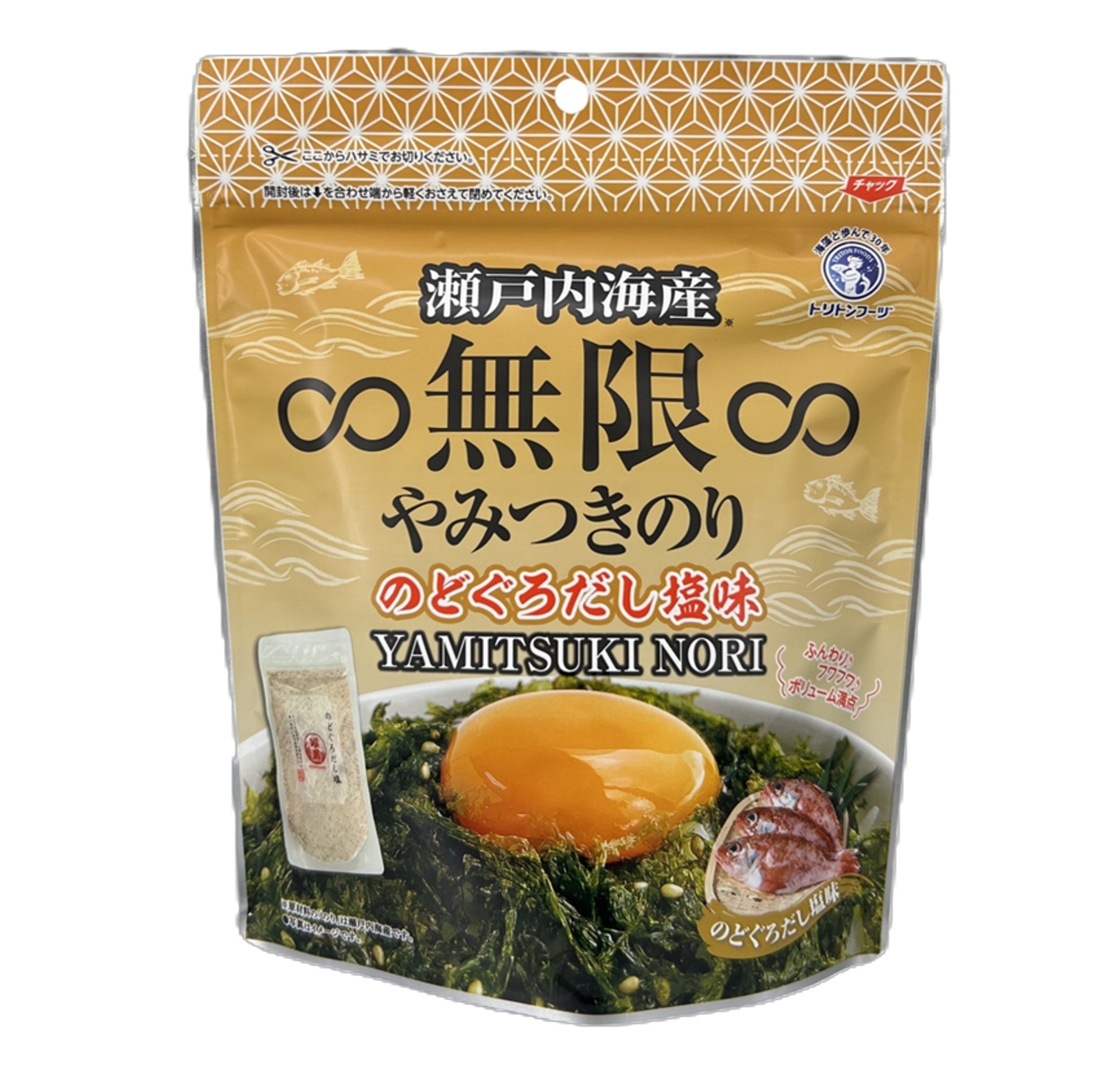 「∞無限∞のりシリーズ」は、トリトンフーヅが展開する、無限に食べられるほど飽きない美味しさのばらのりシリーズです。以前より販売しているプレーンタイプの「∞無限∞素焼きのり」や「∞無限∞やみつきのり」、「∞無限∞わさびのり」などはそれぞれが販売予想を上回り、シリーズ累計販売個数360万個を突破しております。